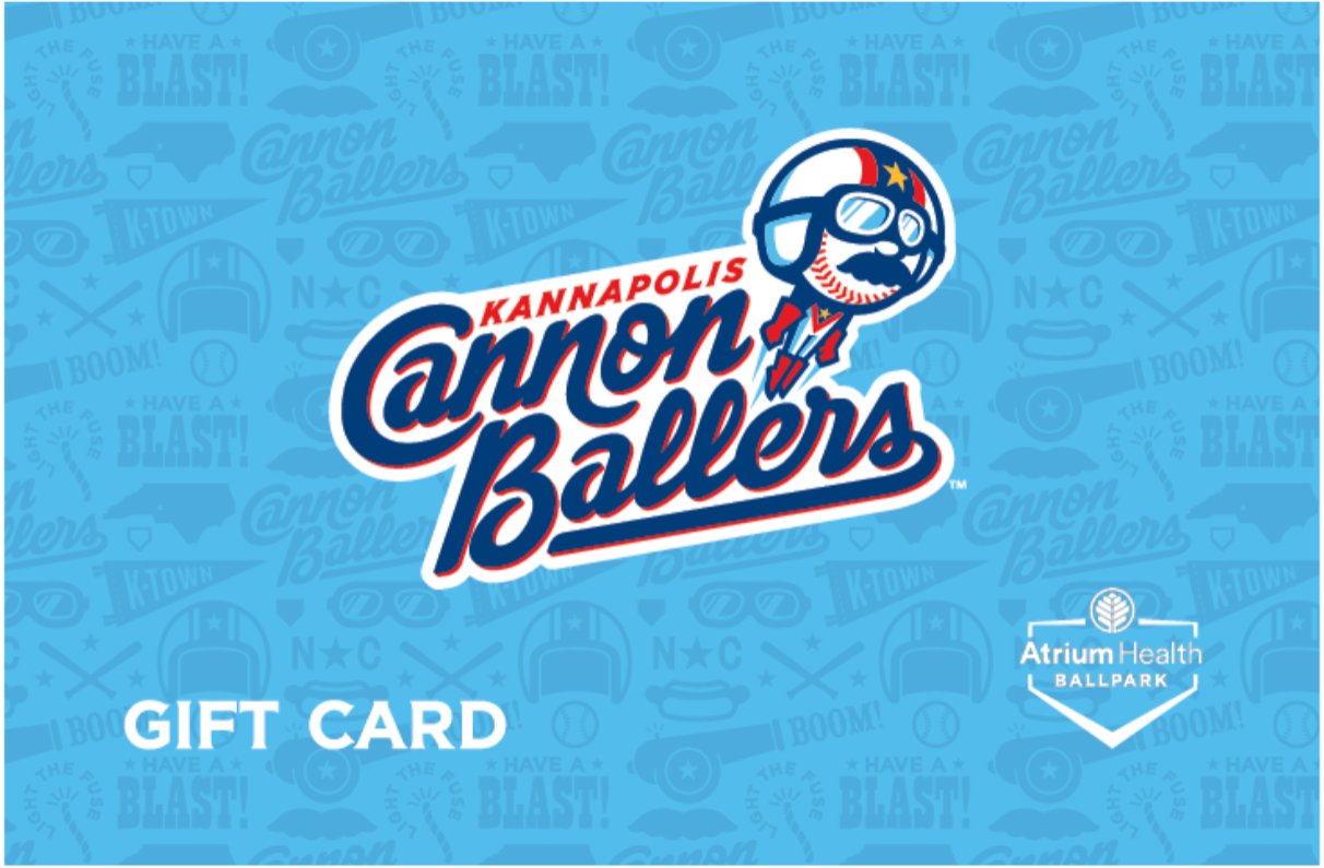 The perfect gift for family, friends, or even the casual baseball fan! Cannon Ballers Gift Cards provide the ultimate flexibility and can be redeemed in-person for game tickets, team merchandise and/or food and beverage throughout Atrium Health Ballpark.